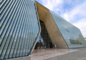 施設のエントランスからメインホールにかけて波打つ高い壁はポーランドとユダヤ人の歴史の亀裂を象徴するもの。